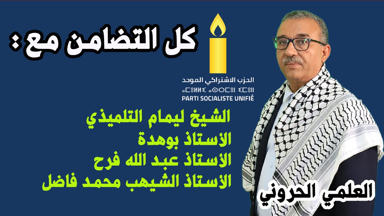 بصفتي عضوا بالمجلس الوطني للحزب الاشتراكي الموحد، وكمواطن، أعبّر عن تضامني الكامل مع المناضلين الشرفاء أبناء الأقاليم الصحراوية الجنوبية لبلدنا، يتعلق الأمر بكل من المواطنين الشيخ ليمام التلميذي وبوهدة وعبد الله فرح والشيهب محمد فاضل لما تعرضوا له، يوم 22 أبريل 2025، من قمع و اعتداء بمناسبة زيارتهم التضامنية مع ساكنة قرية زميلة الغزلان بتدغيست بضواحي مدينة العيون ،