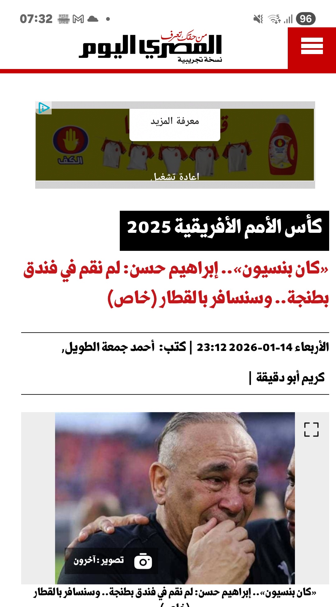 جدير بالذكر أن ودع منتخب مصر لكرة القدم بقيادة حسام حسن المدير الفني للفراعنة مساء الأربعاء، منافسات مسابقة كأس أمم أفريقيا 2025 من الدور نصف النهائي على يد السنغال بهدف دون رد.